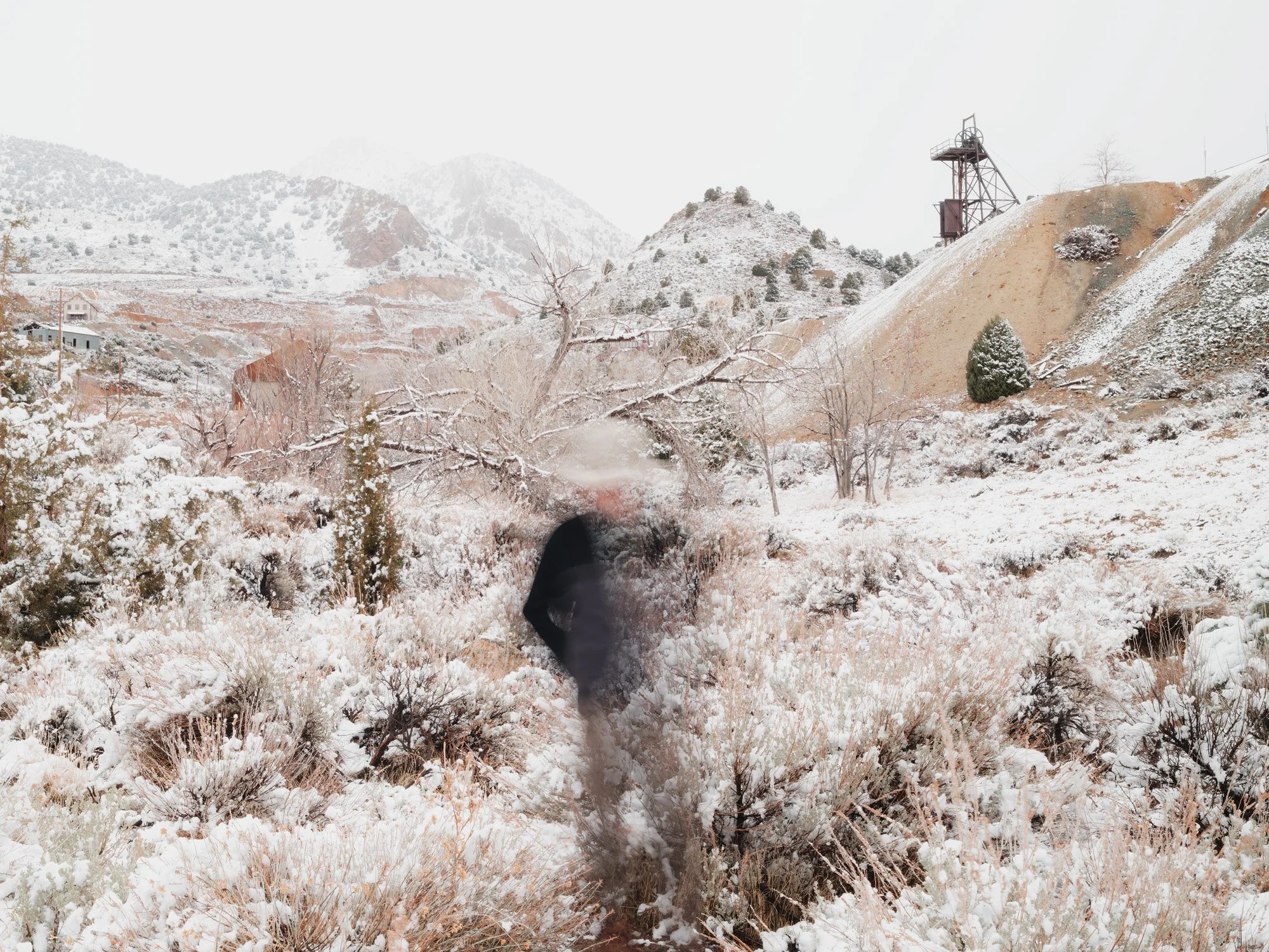 In response, I insert my own body into these landscapes through blurred self-portraits. I return to sites burdened by histories of erasure: the Transcontinental lines, the ruins of Chinatowns and mines, and borderlands. By adopting the visual language of the ghost, I insist that the land remains haunted by those who built it.